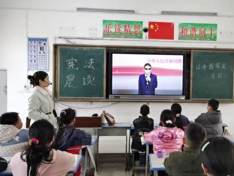 晨读时间中,各班观看2024年国家宪法日教育系统“宪法晨读”活动视频,同时以中小学宪法教育读本为内容,以分小组读、齐读、学生个体读等形式,开展了丰富多彩的晨读活动,用晨读的方式把宪法等法律知识植根于学生心中。