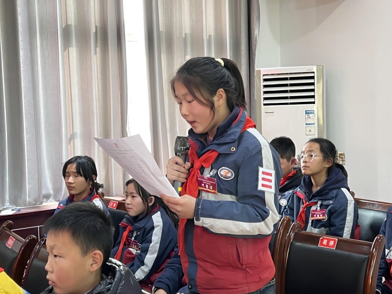 学校少工委副主任邱亚玲为本次少代会致辞,她亲切地表达了对全体队员的期待,预祝本次少代会圆满成功。