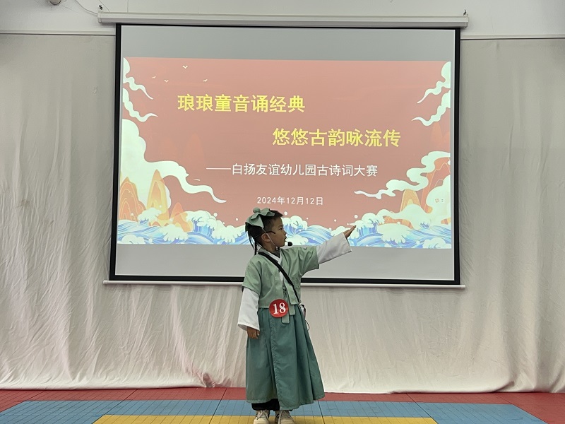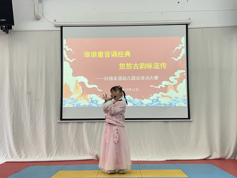 为了让幼儿感受中华优秀传统文化的魅力,提升幼儿的语言表达能力和舞台表现力。12月12日,白扬友谊幼儿园开展了“琅琅童音诵经典 悠悠古韵咏流传”古诗词朗诵比赛。