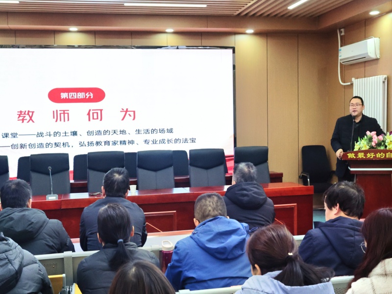 为深入学习贯彻党的二十届三中全会精神,引导教师全身心投入到中国式现代化全面推进、强国建设民族复兴的伟业中,12月19日下午,白水县城关一中在崇德楼四楼会议室开展党的二十届三中全会精神宣讲专题活动。本次宣讲由县教体局学习贯彻党的二十届三中全会精神宣讲团成员、教研室副主任郭学谦主讲。校党支部书记、校长井红军,副校长张周宏、王德红、王智弘及一百余名教师参加了活动。