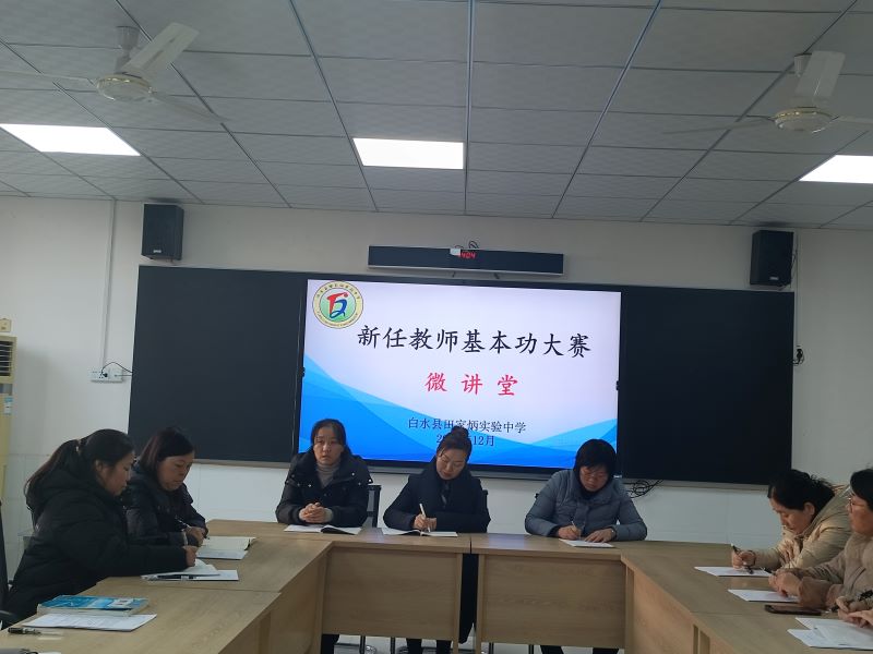教学主任王丽君宣布活动流程及要求:参赛对象为14位新任教师;讲课教师根据指定题目,独立钻研课标教材,精心设计教学内容,充分考量学生认知水平,融合多种教学方法,注重板书设计、作业设计等,讲课时长约15分钟。