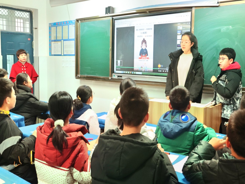 随后,赵老师和她的学生们一起,以电影《热辣滚烫》为情境,用大量相关图片、视频为载体,进行了《人生必须热辣滚烫》励志教育主题班会。孩子们全神贯注看图片、看视频,认真聆听后,用唱歌、手语操等形式,阐述着自己对人生必须热辣滚烫的理解。青春、激情、奔跑、不服输、为自己赢一次等字眼烙在他们心里。