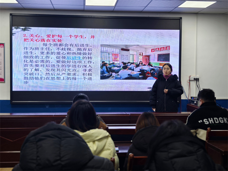 会议伊始,5位班主任代表轮流上台,分享了他们在班级管理和德育工作中的宝贵经验、感人案例、教育故事及深刻的育人心得,一个个生动鲜活的德育案例,赢得了大家的阵阵掌声,也为参会的所有班主任们提供了有益启示和借鉴,有助于提升大家的管理水平和育人技巧。