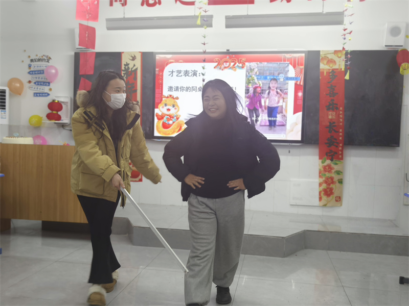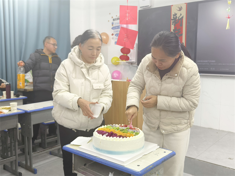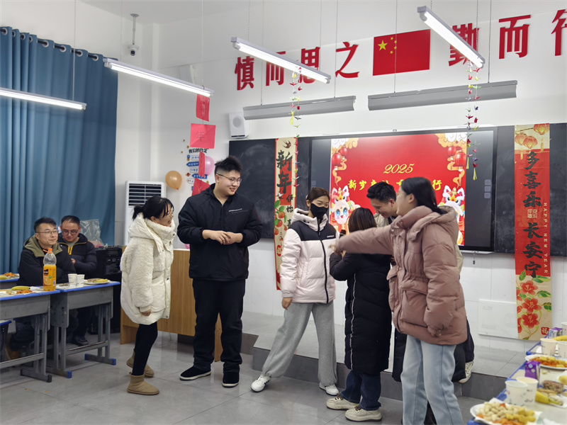 伴随着欢快的音乐,各教研组精心排练的节目依次登场,老师们通过金蛇送福、猜灯谜、你划我猜、谁是卧底等多个游戏环节,为现场观众带来了一场喜迎元旦的华美盛宴。教室里气氛热烈,到处洋溢着老师们的欢声笑语,随着一首《明天会更好》的大合唱,活动缓缓落幕。