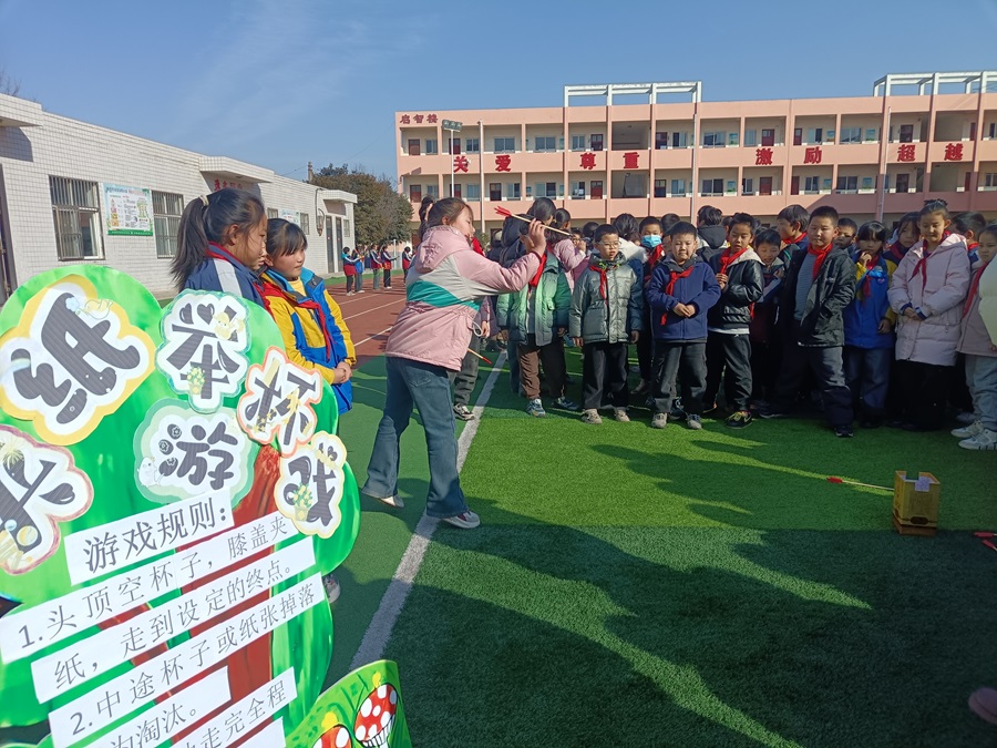 一年级“打地鼠”“拍数字”游戏考验了孩子们的反应速度和手眼协调能力;二年级“叠叠乐”“跳房子”锻炼了孩子们的模仿与身体协调性;三年级“金簪夹球”“螃蟹背西瓜”“海底捞月”增强了孩子们的集体意识和团结意识;四年级“投壶纳祥”等游戏成为孩子们挑战自我、体验传统的舞台;五年级“猜字谜”“诗句大闯关”带领孩子们感受了诗词的独特魅力,收获了经典的文化知识;六年级“拔河比赛”激发了孩子们的团队精神和奋斗精神。