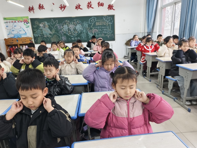 随着眼保健操的乐曲声响起,各班级学生迅速清空桌面,轻闭双眼,坐姿端正,从揉天应穴到按太阳穴轮刮眼眶,每一个动作都做得认真细致,力求通过眼保健操缓解眼部疲劳,保护自己的视力。老师们也在教室里巡回指导,确保同学们的动作规范到位。