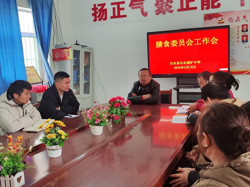 为加强学校食堂管理,保障师生饮食安全与健康,提升膳食质量,2025年2月19日,白水煤矿中学在党员活动室召开了膳食委员会工作会。本次会议由膳食委员会会员共20人参会,食堂负责人申胜利主持。