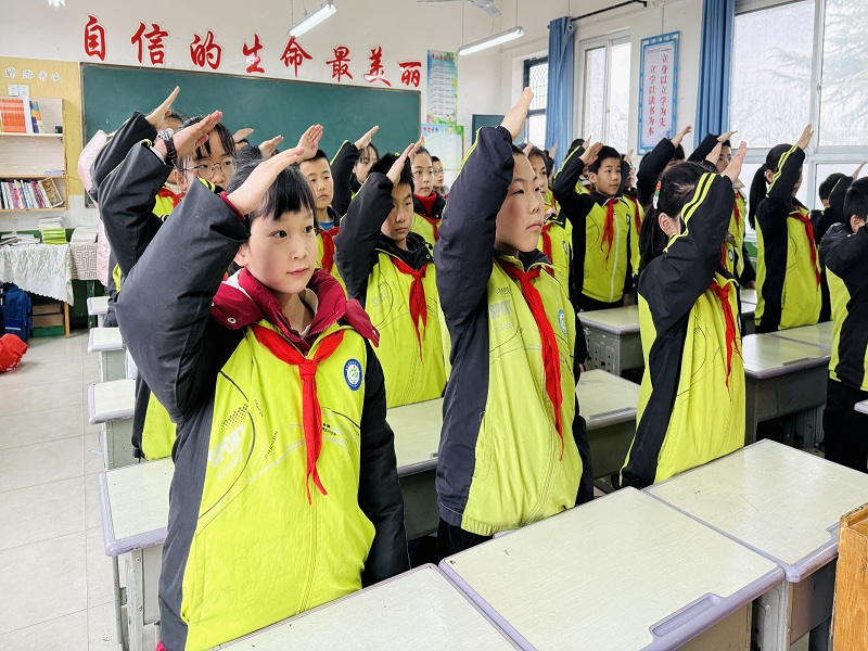 典礼首幕,肃立、敬礼,国歌声如潮涌,激荡着赤子心,少年们以队礼致敬山河,以注目礼凝望信仰。这一刻,春日的风藏着蓬勃生长的力量,与少年的心跳同频共振,也托举起少年们向阳而生的信仰。