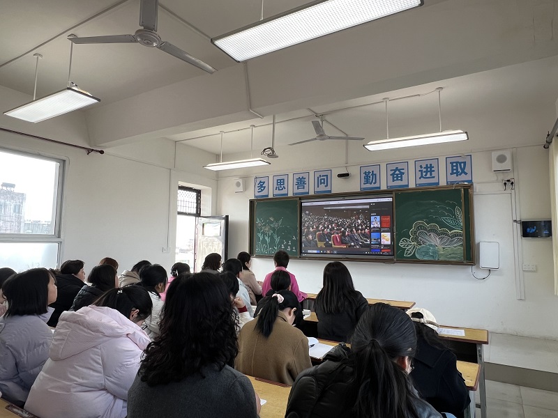 教育是一场向美而行的遇见,是一段温暖人心的修行。为了贯彻落实习近平总书记关于大力弘扬教育家精神重要指示,进一步提升教师的教育理念,增强教师的责任感与使命感,营造全校学习和弘扬教育家精神良好氛围。2月26日上午,由教育部组织的全国优秀教师“教育家精神”2025年巡回宣讲活动在陕西师范大学成功举办。北关逸夫小学组织全体教师在学校录播室认真观看直播学习。
