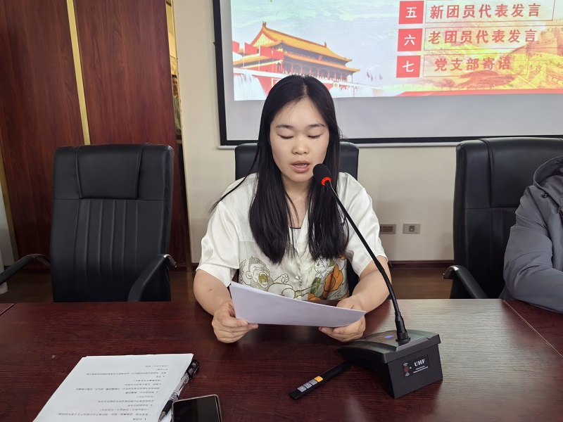 团旗指引方向篇章,出团旗时,鲜艳的团旗飘扬,象征着新的使命与责任。团委书记宣读新团员名单,5名九年级学生,4名八年级学生光荣地加入共青团。校领导为新团员颁发团员证、佩戴团徽,团徽在左胸前闪耀,熠熠生辉。新团员们在优秀团员曹艳菲同学的领誓下,庄严宣誓,誓言铮铮,表达着他们对共青团的忠诚和为共产主义事业奋斗的决心。新团员代表刘怡歌、老团员代表张可腾先后发言,分享成长感悟与责任担当。校党支部委员王晓春老师的寄语,饱含期望,激励着团员们在新时代努力奋进。