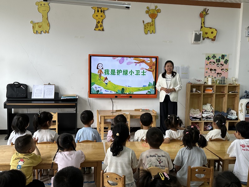 当屏幕上出现被砍伐后荒芜的林地画面时,教室里瞬间安静下来,孩子们脸上露出凝重的神情,真切体会到保护树木的重要性。王语琛妈妈的讲解,不仅为孩子们打开了一扇了解园林绿化的窗口,更在他们幼小的心灵中播下了保护环境的种子。在互动环节,孩子们纷纷举手,积极分享自己知道的环保小知识,还表示要做 “护绿小卫士”,回家监督爸爸妈妈一起爱护环境。