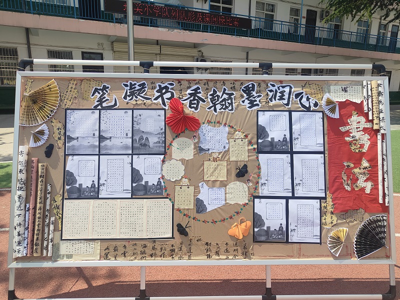 线下展区内,操场上陈列的书画作品令人驻足。书法作品中,稚嫩的笔触或工整娟秀,或苍劲有力,横竖撇捺间尽显汉字之美;绘画作品题材丰富多样,水彩画色彩斑斓、想象力十足,素描作品线条细腻、造型生动,一幅幅佳作展现出孩子们天马行空的创意与扎实的艺术功底。