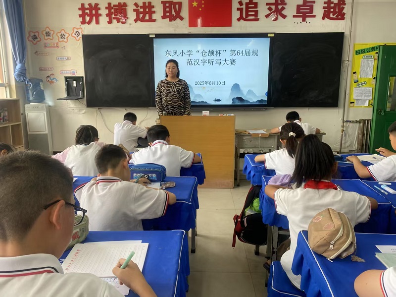 6月10日上午,白水县东风小学的每一间教室都流淌着专注的气息。伴随着笔尖沙沙的韵律,第64届“仓颉杯”规范汉字听写大赛火热开启!全校1-6年级全体学子齐上阵,在方寸纸墨间展开了一场汉字功底的精彩较量,让规范书写与文化传承之花在校园绚烂绽放。