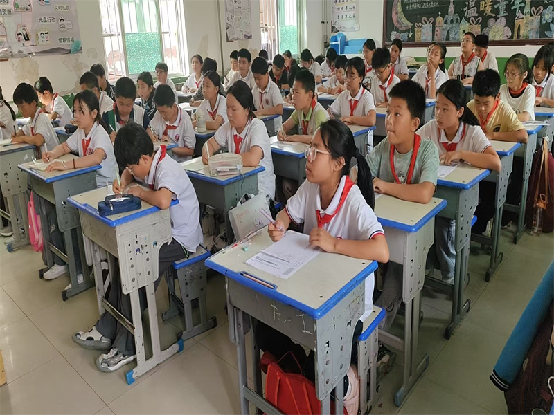 教室里,学生们精神饱满,信心十足。他们时而凝神静思,时而奋笔疾书,专注的神情和自信的笔触充分展现了自己扎实的英语功底。整个赛场秩序井然,洋溢着积极向上、乐学善思的良好风貌。
