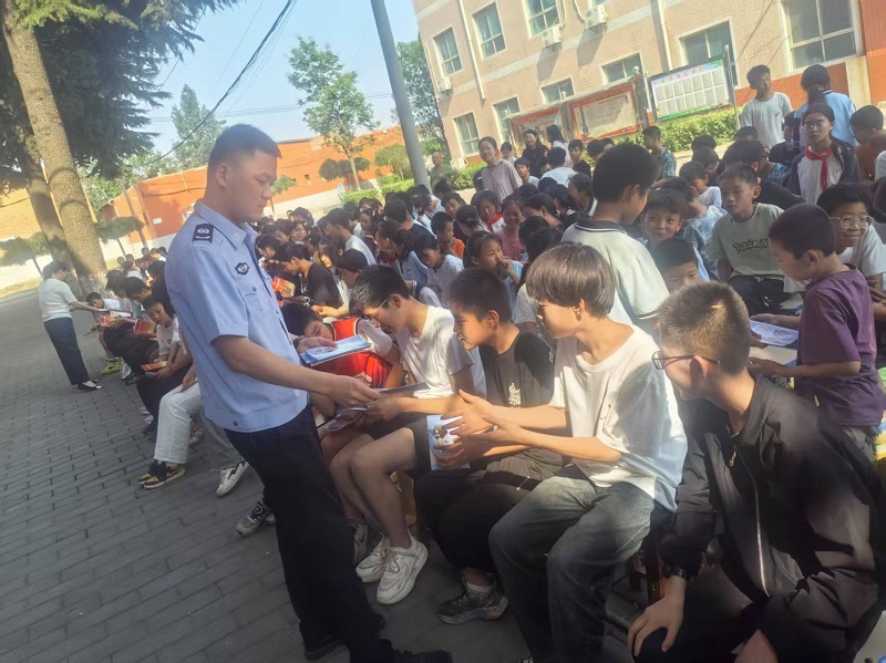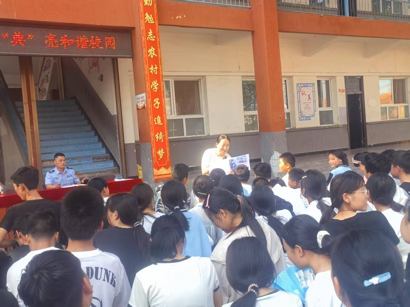 正值暑假来临之际,宣讲团特别增设“暑期安全普法课堂”。王玛莉从防溺水、交通安全、食品安全、手机诈骗等方面入手,向学生们传授实用的安全防范知识。她强调,游泳要做到“六不”,出行遵守交通规则,饮食注意卫生安全,网络使用提高警惕等,筑牢暑期安全防线。最后所长王超通过他所了解的未成年人案例,结合近年来发生的典型案例,给学生上了一堂生动的警示教育课,并于现场人员一起为师生发放了法律知识宣传手册。