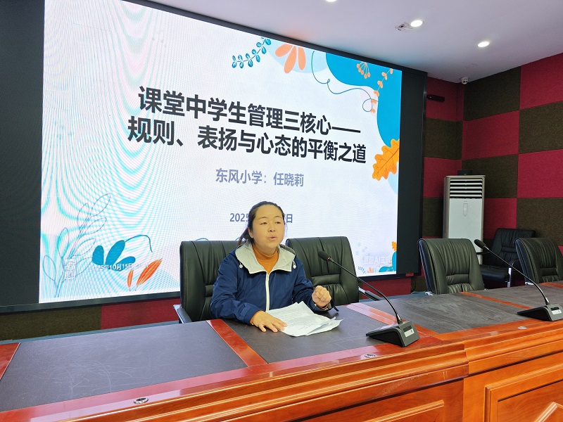 骨干教师、模范班主任任晓莉以《课堂中学生管理三核心》为主题,分享了她在班级管理方面的核心经验。任老师认为课堂管理中最核心的三件事:规则、表扬与心态。核心一:规则要“活”,关键在于和学生一起共建清晰规则。学生参与制定的规则,他们会更有主人翁意识,也更愿意遵守。核心二:表扬要“巧”,真正高明的表扬,要具体、真诚,并且要表扬过程,而不是只看结果。要让表扬像手电筒,照亮学生具体的努力和进步,而不是像探照灯,泛泛地评价个人。核心三:心态要“稳”这是在班级管理中最重要的核心。难免会遇到各种挑战和困难,如学生的调皮捣蛋、家长的误解等。任老师提醒新教师们,要保持稳定的心态,不被情绪所左右。老师的情绪状态,直接决定了课堂的生态。稳住自己,就等于稳住了整个课堂。