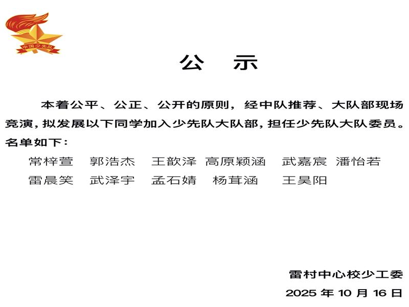 童心向党展风采 少年逐梦永担当——雷村中心校举行大队委竞选活动