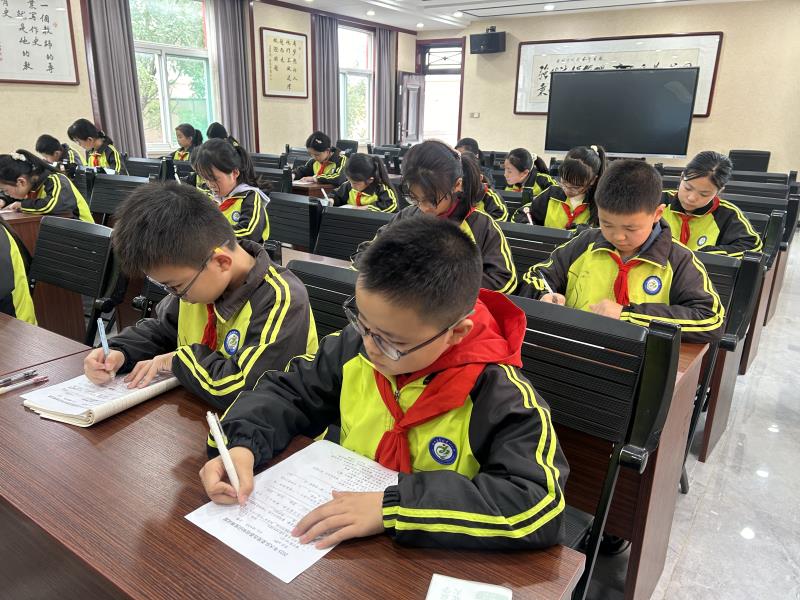 笔试环节于当日首先进行,内容紧扣少先队“六知六会一做”基础知识,涵盖队旗、队徽、队礼、队歌等应知应会内容。大队部成员与优秀中队辅导员负责全程监考,确保考风严谨。考场内,候选队员们沉着冷静,认真思考,奋笔疾书,每一笔每一划都书写着对少先队组织的深刻认识与无限热爱,展现了扎实的理论功底和良好的精神风貌。