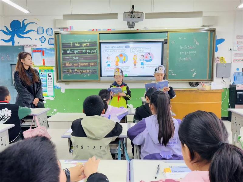 徐婧老师执教四年级上册《I like sports》一课,徐老师通过多媒体、实物、角色扮演等方式创设真实或贴近生活的语言情境,让学生在情境中自然地运用英语,激发学生的学习兴趣和语言表达欲望。此外,她还设计了丰富多样的教学活动,如游戏、歌曲等,充分调动学生的积极性和参与度,使学生在活动中掌握语言知识和技能。徐老师的课堂气氛活跃,师生互动良好,达到了预期的教学目标。