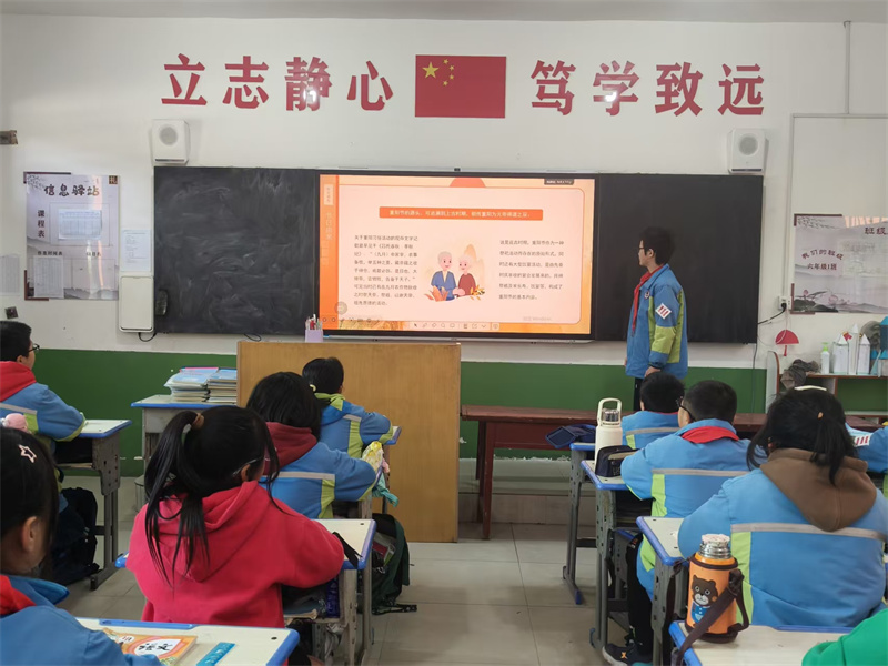 班队会上,老师借助生动的故事与实例,讲述重阳节的历史渊源与文化内涵,阐释尊老敬老对家风传承与社会和谐的重要意义。同学们通过分享自家敬老故事、交流感恩心情,深刻体会到孝敬长辈、懂得感恩是中华民族的传统美德。