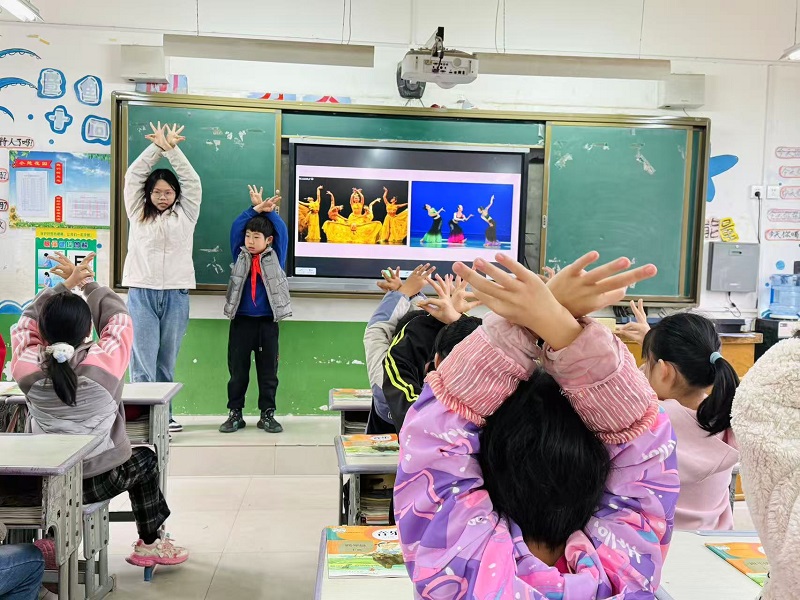 郭理萍梦玉老师执教的是四年级的《快乐的泼水节》一课。课堂上,郭老师巧妙运用现代教育技术手段,以生动的旋律、形象的情境创设,引导学生沉浸式感受音乐魅力,从节奏感知到情感表达,层层递进的教学环节充分调动学生参与热情,让学生在愉悦的氛围中提升艺术素养,深刻践行“以学生为本”的教学理念。