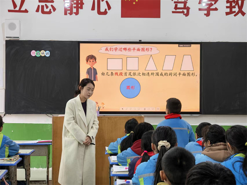 收水中心校侯梦琦老师执教六年级《圆的认识》,以“轮子之谜”视频和“车轮为什么是圆形”问题导入,激发学生兴趣。通过画圆、探究半径直径关系等活动,让学生动手操作、小组交流,逐步认识圆的特征,感受几何的奇妙。