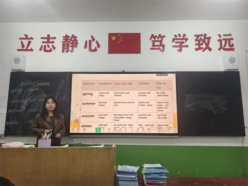 张艺一老师执教《Seasons》,课堂上,学生表现积极、小组互动热烈。孩子们不仅熟练掌握了四季词汇与核心问答句型,并能结合生活灵活运用英语进行交流,读写能力进一步稳步提升,展现了扎实的语言功底与学习热情!