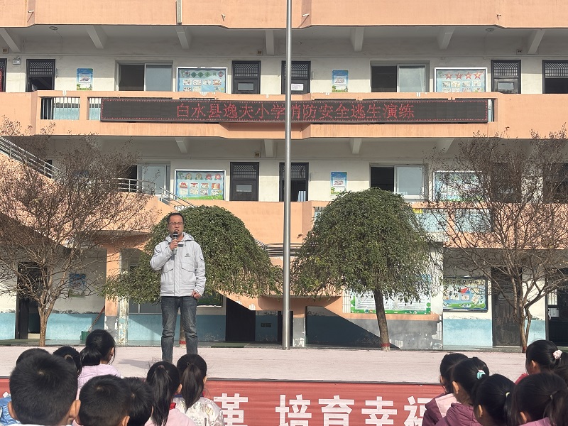为加强校园安全管理,进一步普及消防安全知识,增强师生安全意识,提高全体师生的预防突发事件的应变能力,并学会熟练掌握逃生自救、互救方法。本着“安全第一,预防为主”的思想,白水县逸夫小学于11月14日组织全体师生开展了消防安全逃生演练活动。