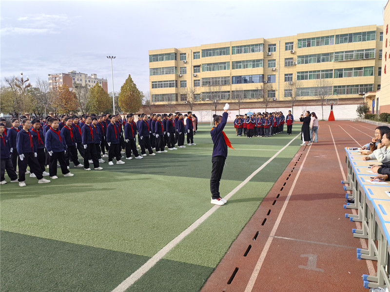 各班队伍身着整齐服装,迈着铿锵有力的步伐入场。从立正稍息的严谨,到齐步走的整齐划一;从队形变换的默契配合,到转向时的干脆利落,每一个动作都凝聚着同学们的汗水与努力。他们眼神坚定,精神抖擞,用标准的姿态诠释着“团结就是力量”,用响亮的口号传递着少年的朝气与自信。