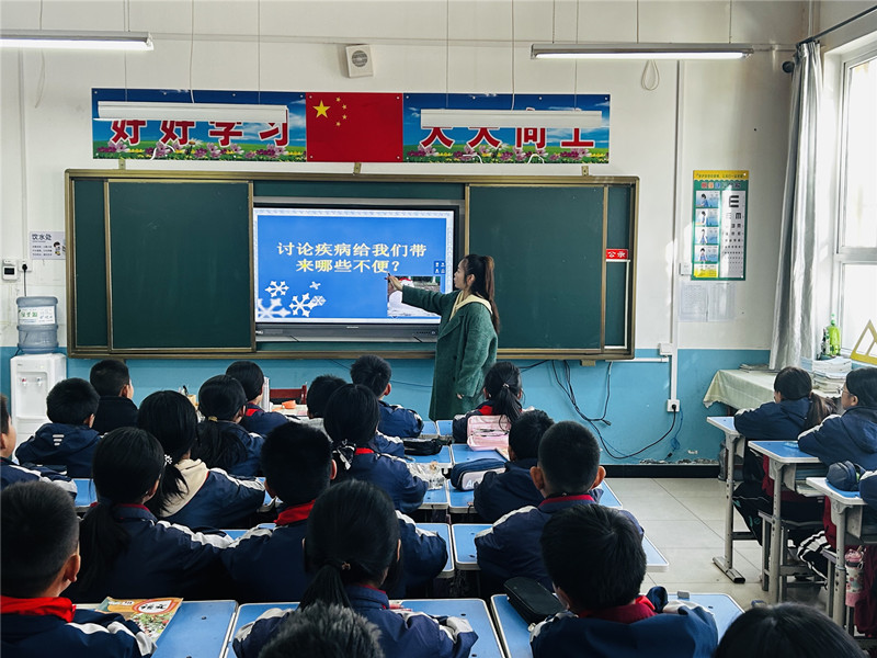 班队会以“冬三月”的气候特点切入,班主任先带领学生讨论“疾病带来的不便”,并让学生直观感受健康的重要性;随后重点介绍了流感、水痘、鼻炎等冬季常见疾病的传染源、传播途径及临床表现,还对比了普通感冒与流行性感冒的差异,帮助学生学会区分不同病症。