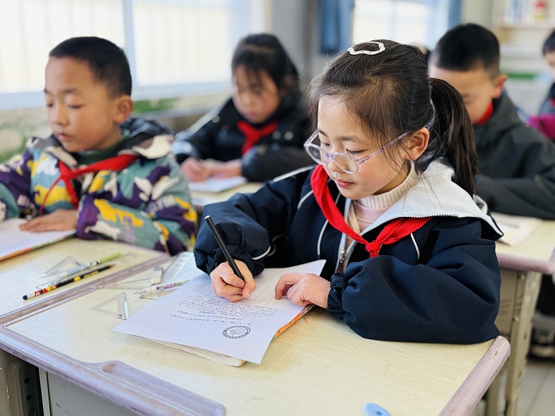 活动中,同学们坐姿端正、握笔规范,以专注的神情投入书写。点横撇捺间尽显认真,起笔收锋处藏着章法,一张张整洁的稿纸上,或稚嫩工整、或流畅舒展的汉字跃然纸上,既展现了对经典的敬畏,更流露着对书法艺术的热爱。