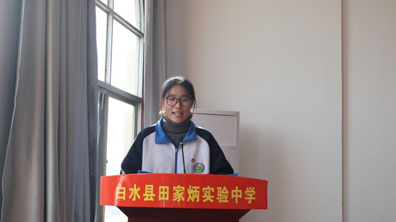 李音婵同学作为新团员代表发言。她满怀激动,用青春的誓言郑重承诺,会把个人梦想融入家国情怀,以实际行动承担应有的责任与担当,践行共青团员的初心与使命。