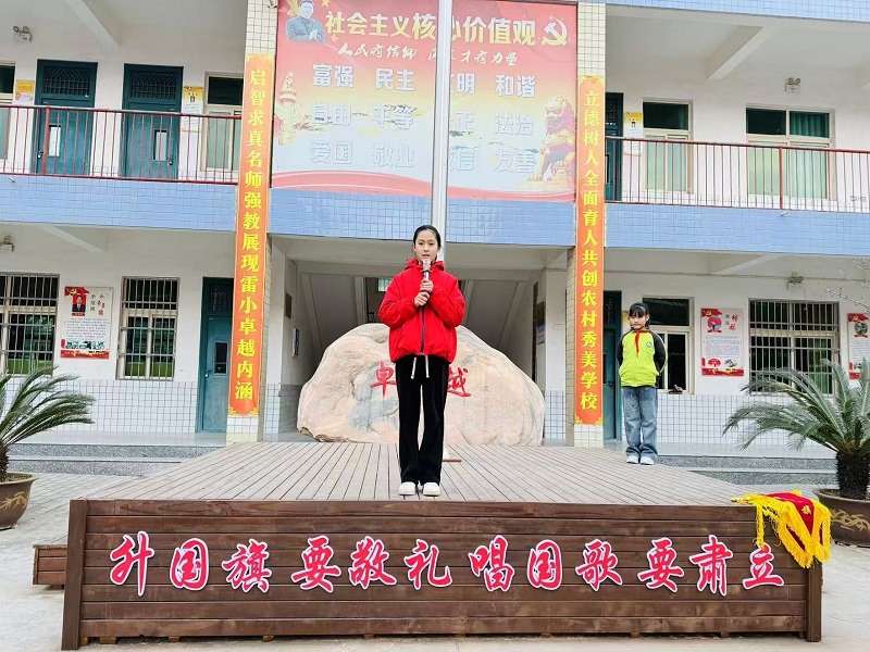 升旗仪式上,学生代表以“铭记历史,立志报国”为题发言。发言既回溯了惨痛的历史过往,也立足当下号召同学们守护和平、展望未来,字里行间满是新时代少年对历史的清醒认知与对祖国的赤诚热爱,引发全场师生强烈共鸣。