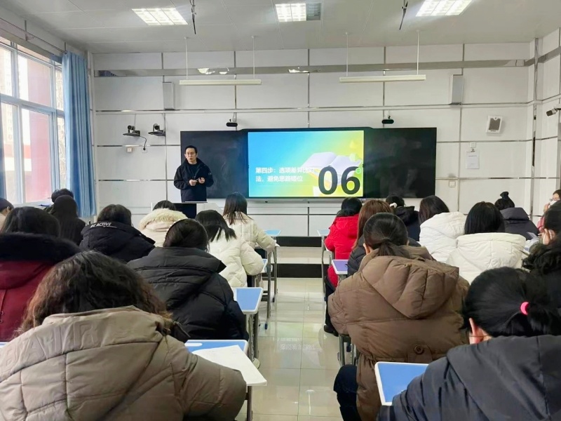 讲座中,郭宏俊结合丰富教学案例,深刻剖析了学生答题时存在的审题偏差、定位不准、答题不规范、积累不足等核心症结。针对这些问题,他系统分享了自主研发的“四步解题法”:审题三问法通过圈画标注明确答题方向,线索句定位法依托关键词与文体特征找准文本依据,标准化答题思路为不同题型提供规范表达模板,选项差异比对法助力规避干扰陷阱。整套方法层层递进、实操性强,让在场教师明晰了“从课标到课堂、从方法到得分”的完整教学逻辑。