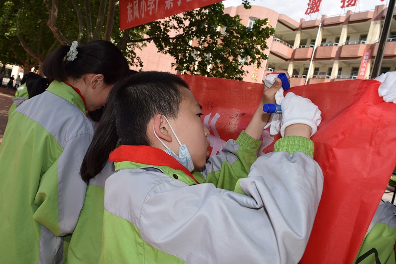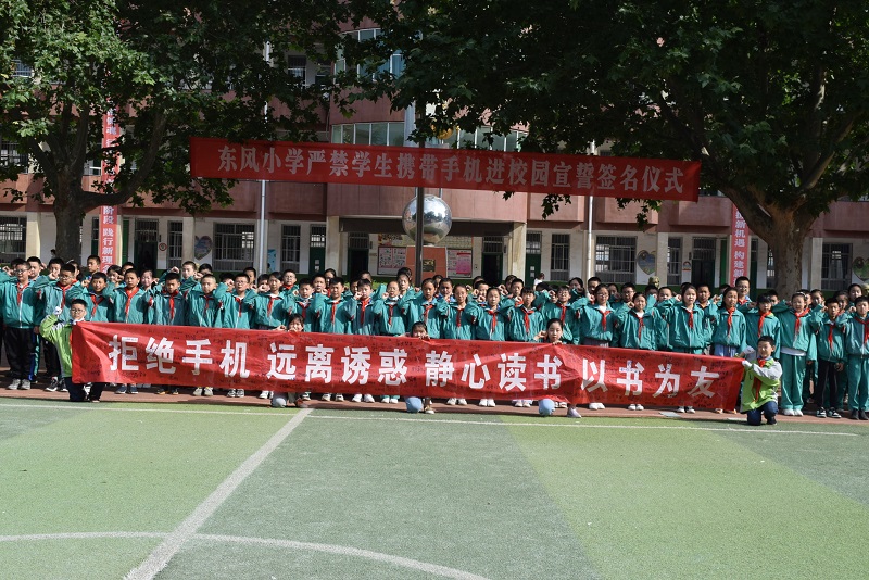 活动中,学校德育主任田甜老师宣读了《东风小学严禁学生带手机进校园倡议书》,明确提出“学生原则上不能将手机等电子产品带进校园”,如若确实需要必须向班主任递交书面申请……接着,在少先队员杨舒然的带领下,开展了宣誓活动。孩子们举起右拳,庄严宣誓道:远离手机诱惑,好好学习、积极上进,努力成长为社会主义现代化建设所需要的人才。随后,全体学生进行了“拒绝手机诱惑”签名活动。舍一时之手机,争一世之先机,队员们拿起手中的笔,毫不犹豫的签下自己的名字,这既是醒悟,也是承诺,更是践行的决心。