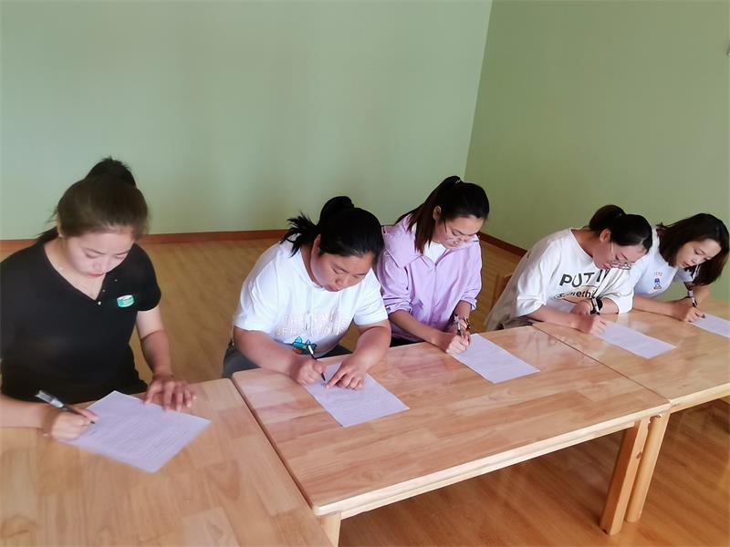 会上,人和幼儿园组织全体教师学习《新时代中小学教师职业行为十项准则》、《新时代幼儿园教师职业行为十项准则》、渭南市教育局关于《加强教师队伍师德师风建设八严禁》、《幼儿园教师违反职业道德行为处理办法》等有关文件,学习中全体教师认真听讲并做好笔记;随后大家履行承诺一起朗读《白水县中小学教师师德师风承诺书》并签订承诺书公开承诺。大家根据学习内容,对照自查,书写报告,我园将对每位教师进行师德师风鉴定。最后副园长冯晓娟讲到:社会对幼教职业要求很高,家长对幼师的期望很高,我们坚决不能触碰红色底线。当工作遇到困难时,要细数工作中令人感动的瞬间,来提高自己的幸福指数。要想成为一名优秀的幼儿教师,一定要不断地自我剖析、自我发展、自我完善、自我超越,内强素质,外塑形象,才能在幼教这片净土上实现自己的人生价值!