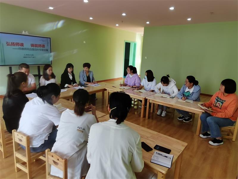 为进一步加强幼儿园教师师德师风建设,根据《白水县教育局关于在全县中小学幼儿园开展师德师风自查自纠工作的通知》,6月18日早上,白水县人和幼儿园组织全体教师召开“弘扬师魂 铸就师德”师德师风自查自纠专题会议。