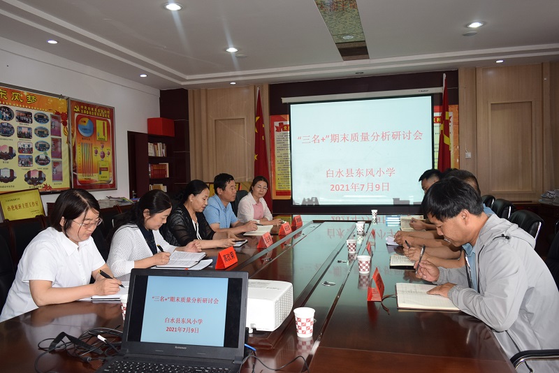 为了进一步加强教育发展共同体学校的交流,实现共同体学校教学质量的整体提升,7月9日,白水县东风小学教育共同体召开了“三名+”期末质量分析研讨会,东风小学校长张冬梅、林皋中心校校长杨王忠,杜康中心校校长张军,西固中心校校长高博,城关小学副校长黄晓娟及东风小学部分校委会成员参加会议。