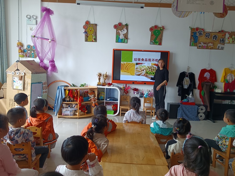 各班老师根据幼儿年龄特点,利用图片、视频、讲故事等方式,生动有趣的向幼儿讲解如何选择食品,明白哪些食品不能吃,哪些食品不能多吃,哪些食品应该多吃。并向幼儿讲解垃圾食品、变质食品对身体的危害,让幼儿学会对垃圾食品和问题食品说“不”。