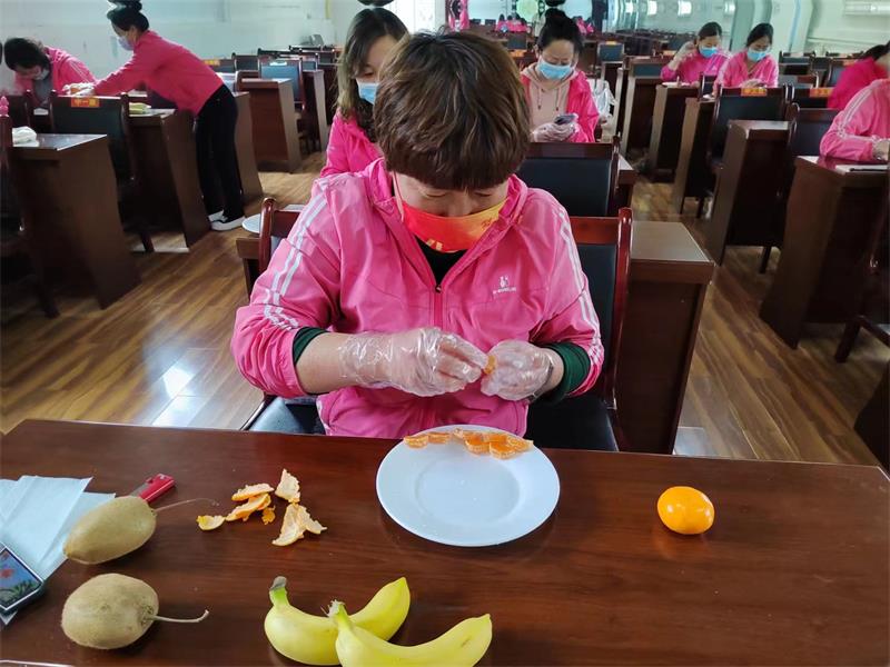 本次活动由保育主任马晓芳主持,保教主任段艳艳和全体保育员参加。培训内容分“花样小辫”和“创意水果拼盘”两项。