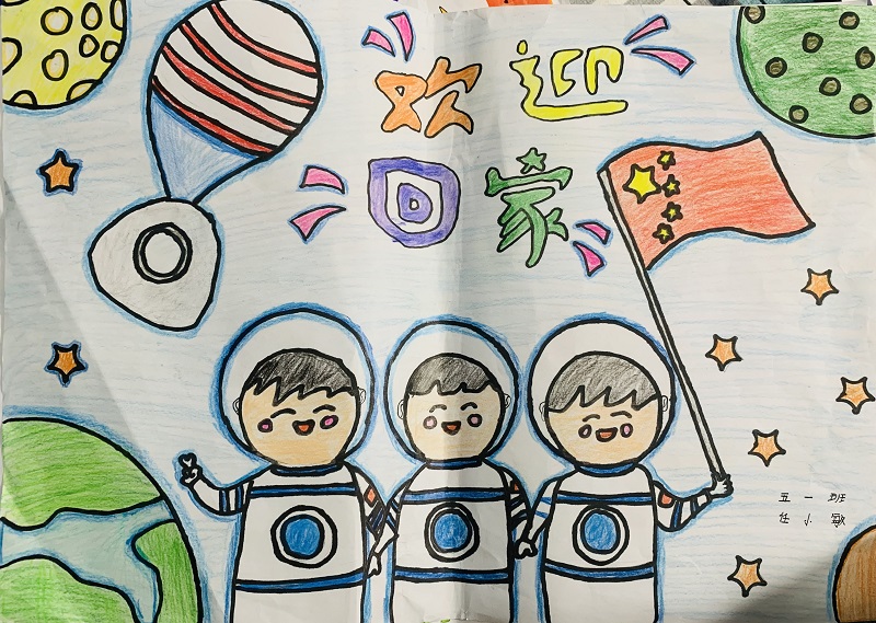 英雄们凯旋而归!队员们用文字记录下了自己无比激动、自豪的心情,用画笔描绘了自己的太空梦想!四至六年级的队员代表们参加了航天知识竞赛,进行航天知识大PK!