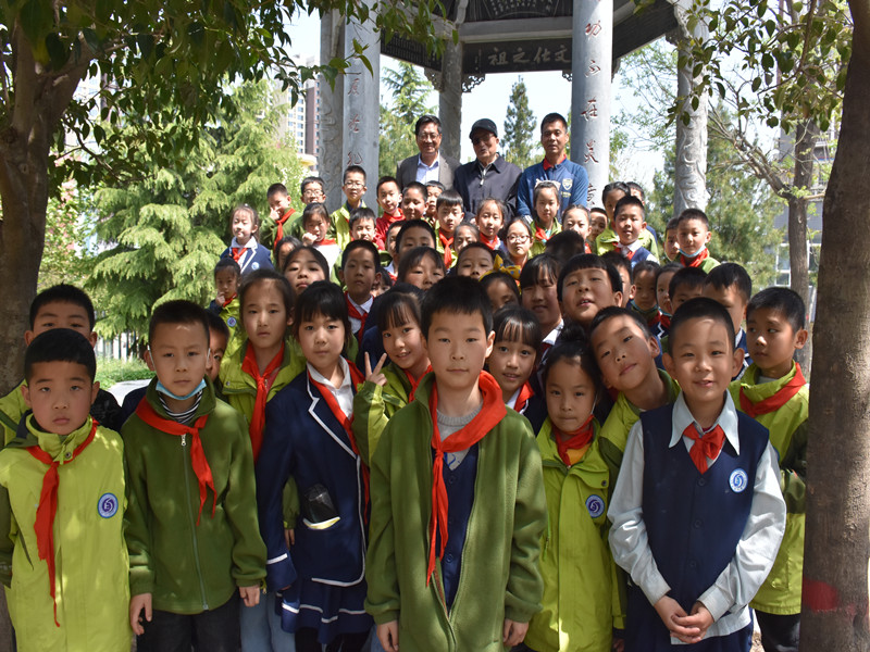 4月19日上午,春日和煦。白水小学学生在安全主任林小龙的带领下,走上仓颉路,来到仓颉像前,聆听了省作协会员、仓颉文化传承人王孝文先生讲述了仓颉造字与鸟迹书的故事。