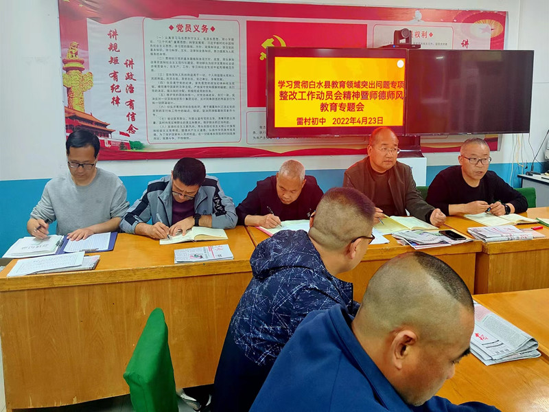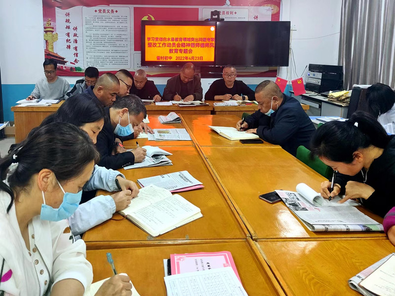 雷村初中为落实县委、县教育局关于《白水县教育领域突出问题专项治理工作方案》通知精神,进一步提升学校工作建设。
